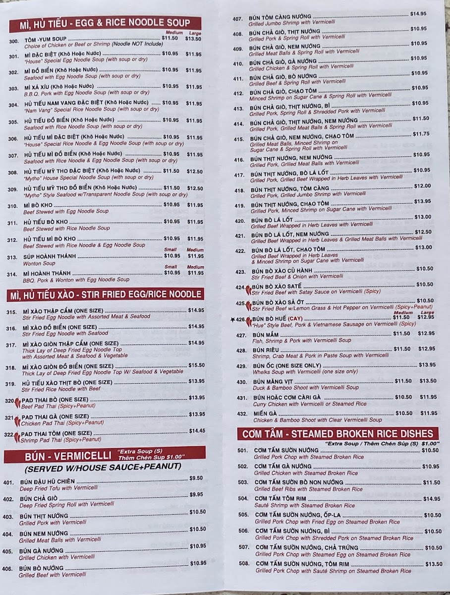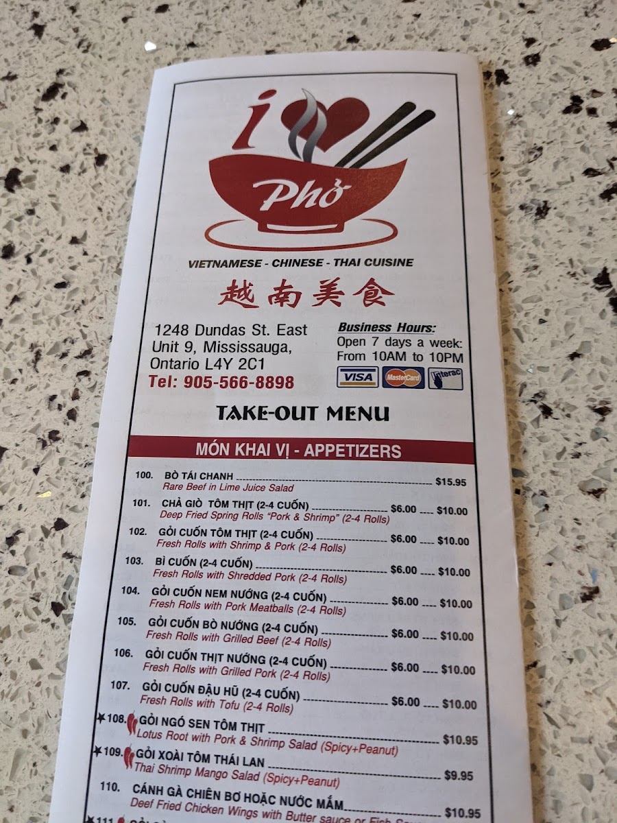 The menu at I Love Pho 2 features a variety of traditional Vietnamese and Asian dishes, organized across several distinct categories. Visitors can find a selection of noodle soups, including special rice noodle soup and pho varieties such as seafood pho and Bún Bò Huế. These soups are often accompanied by fresh herbs and garnishes to customize each bowl.